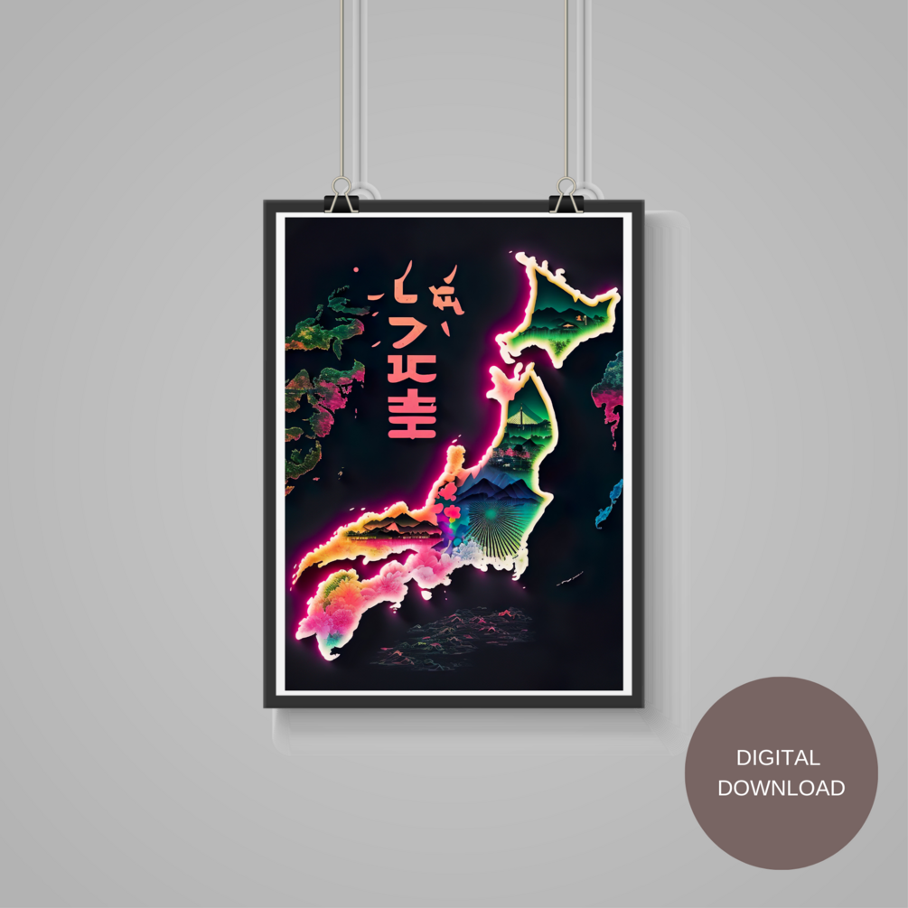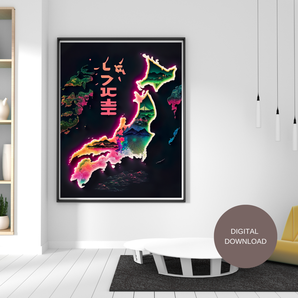 Hi ya! Looking for a neon Japanese printable wall art to brighten up your bedroom or home office? Then this digital print is perfect for you!