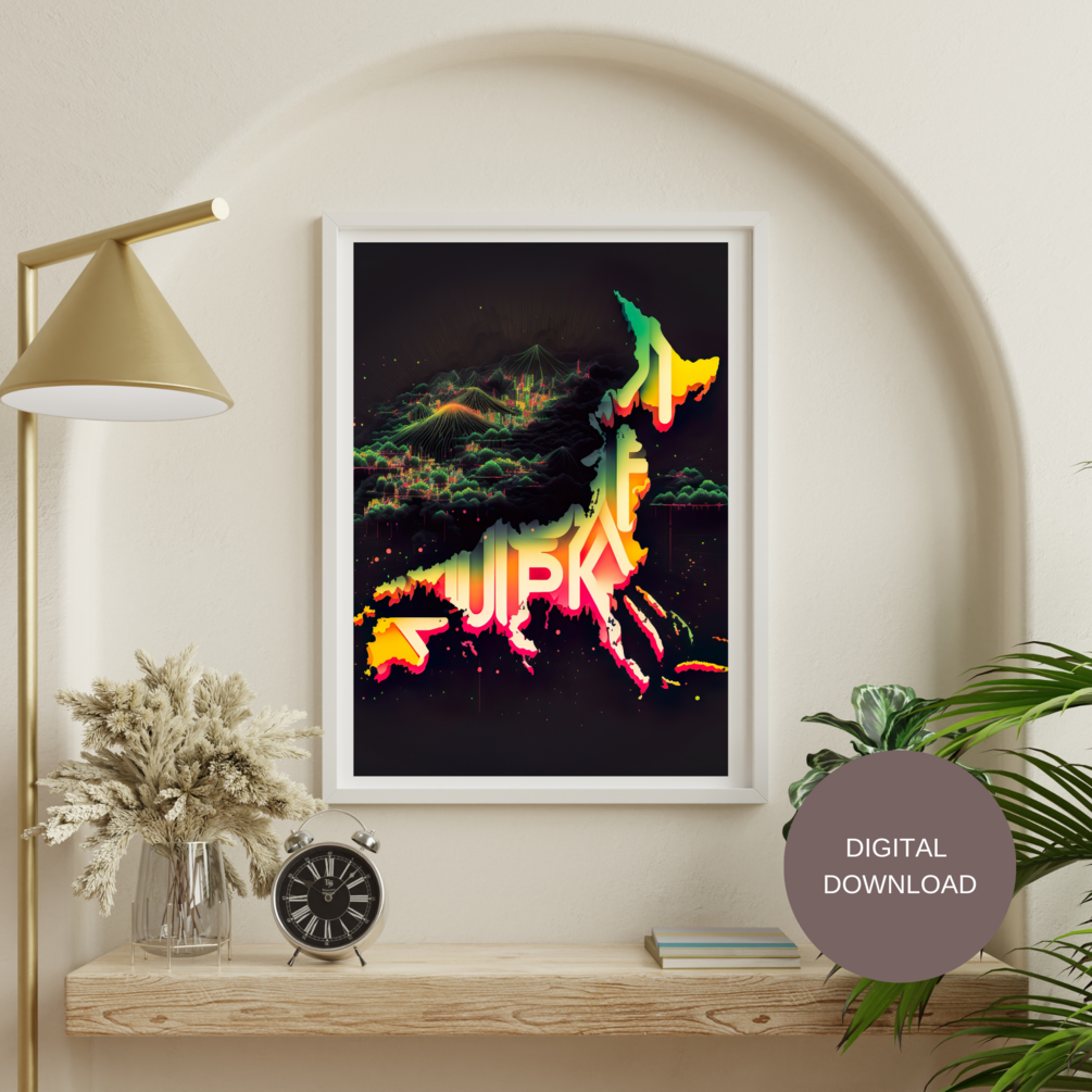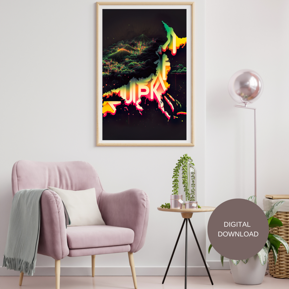 Hi ya! Looking for a neon Japanese printable wall art to brighten up your bedroom or home office? Then this digital print is perfect for you!