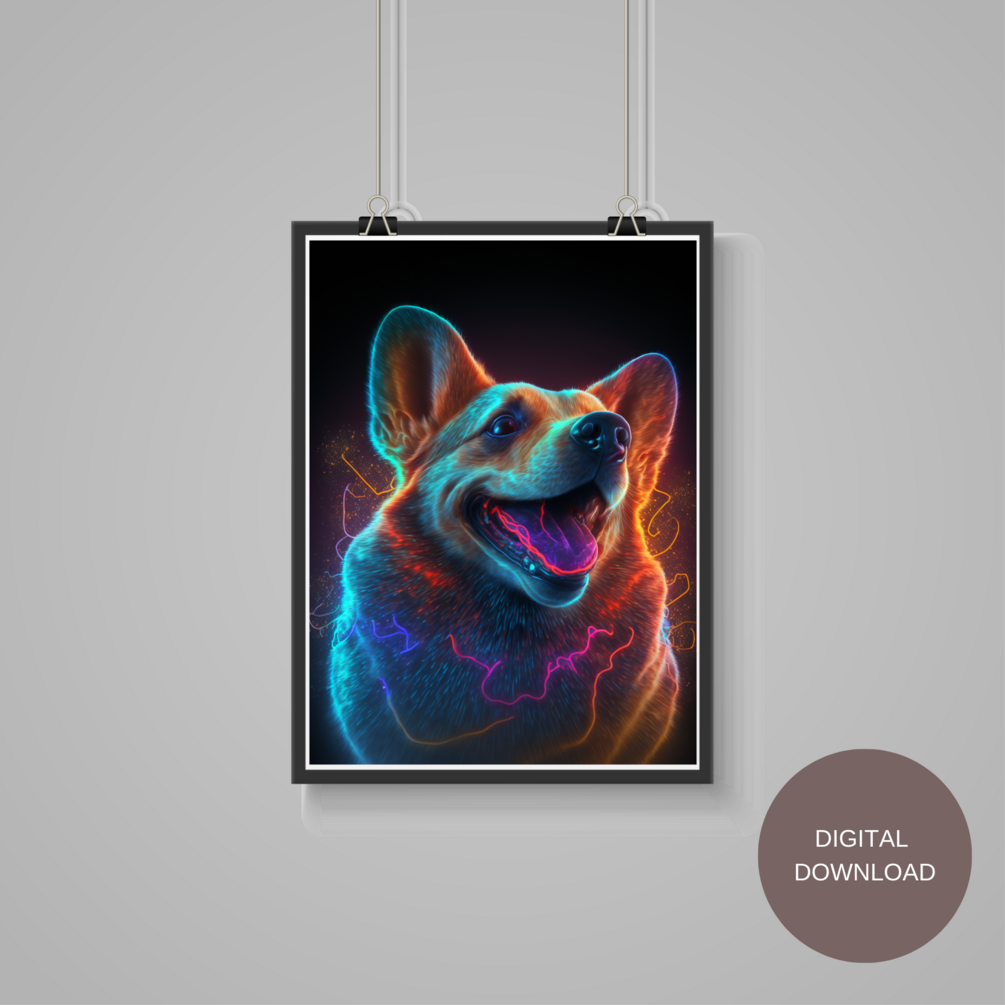 Neon Puppy Dog Wall Art, Digital Download, Home Decor, Printable
