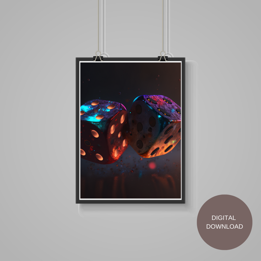 Neon Shadow Dice Wall Art, Digital Download, Home Decor, Printable